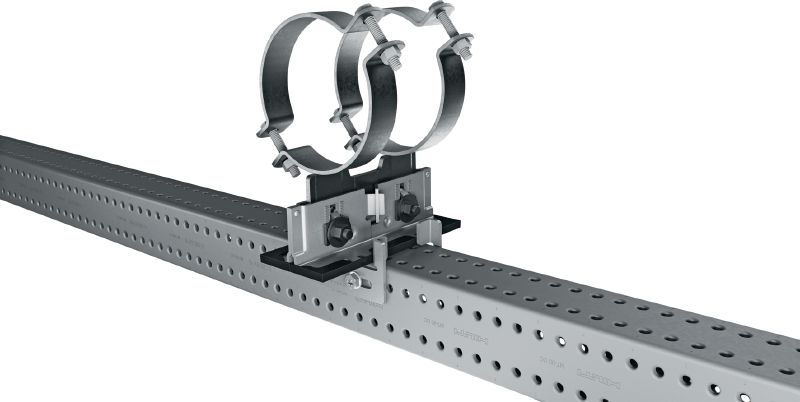 - Fastening pipes to steel beams, concrete or Hilti modular support girders